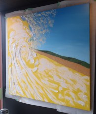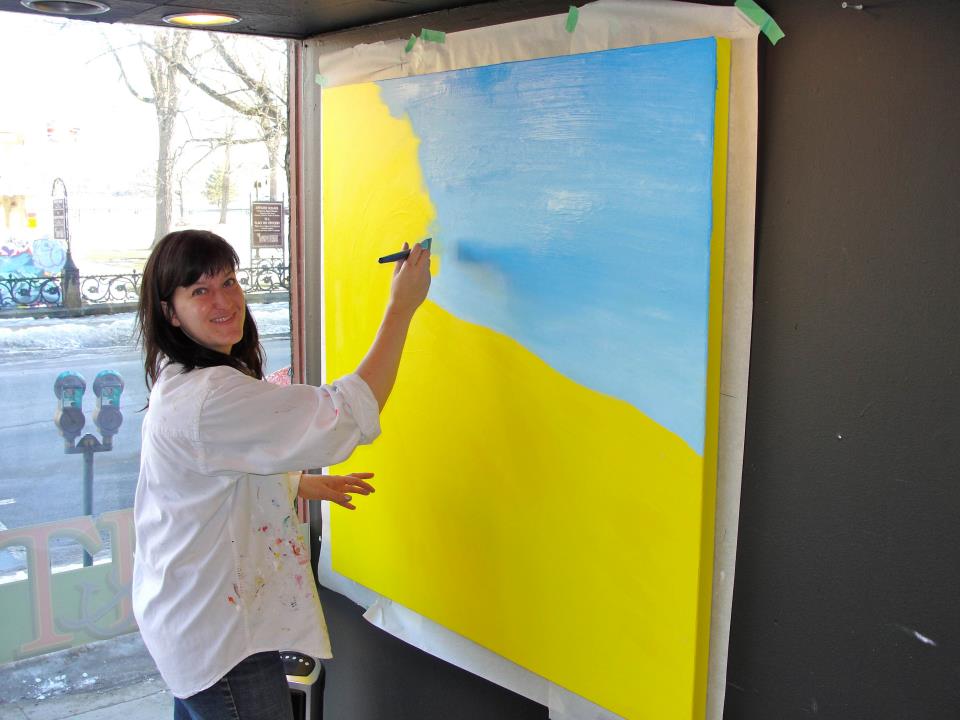 On Friday February 3rd, 2012. I finished my 48″x48″ painting, which was all done and completed in the window front of the M&T Deli.