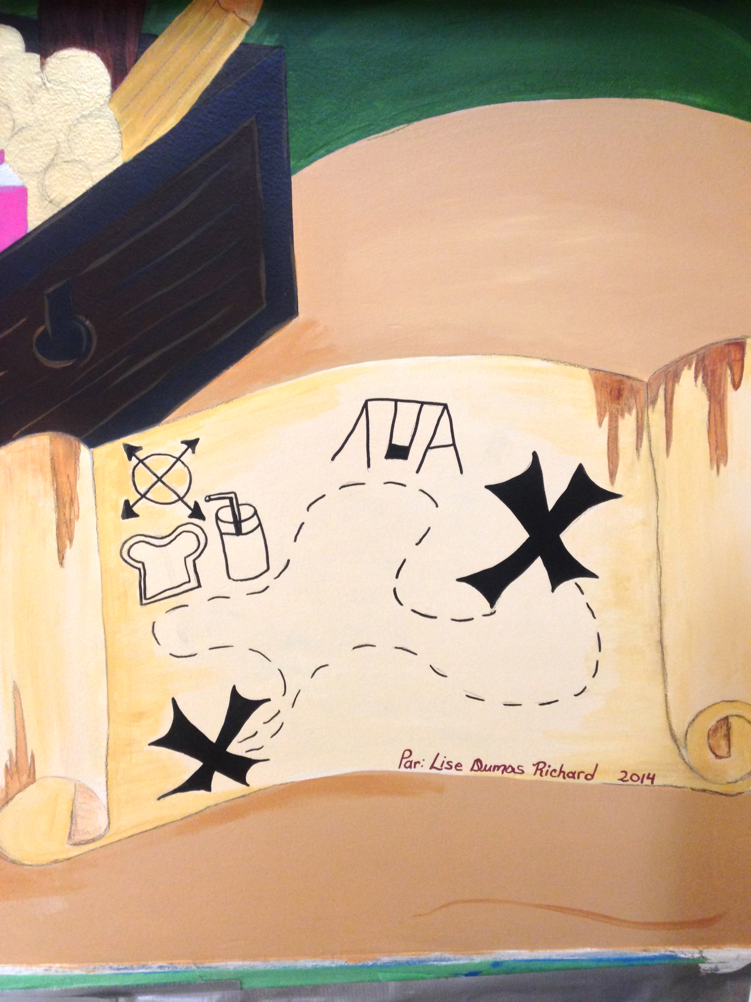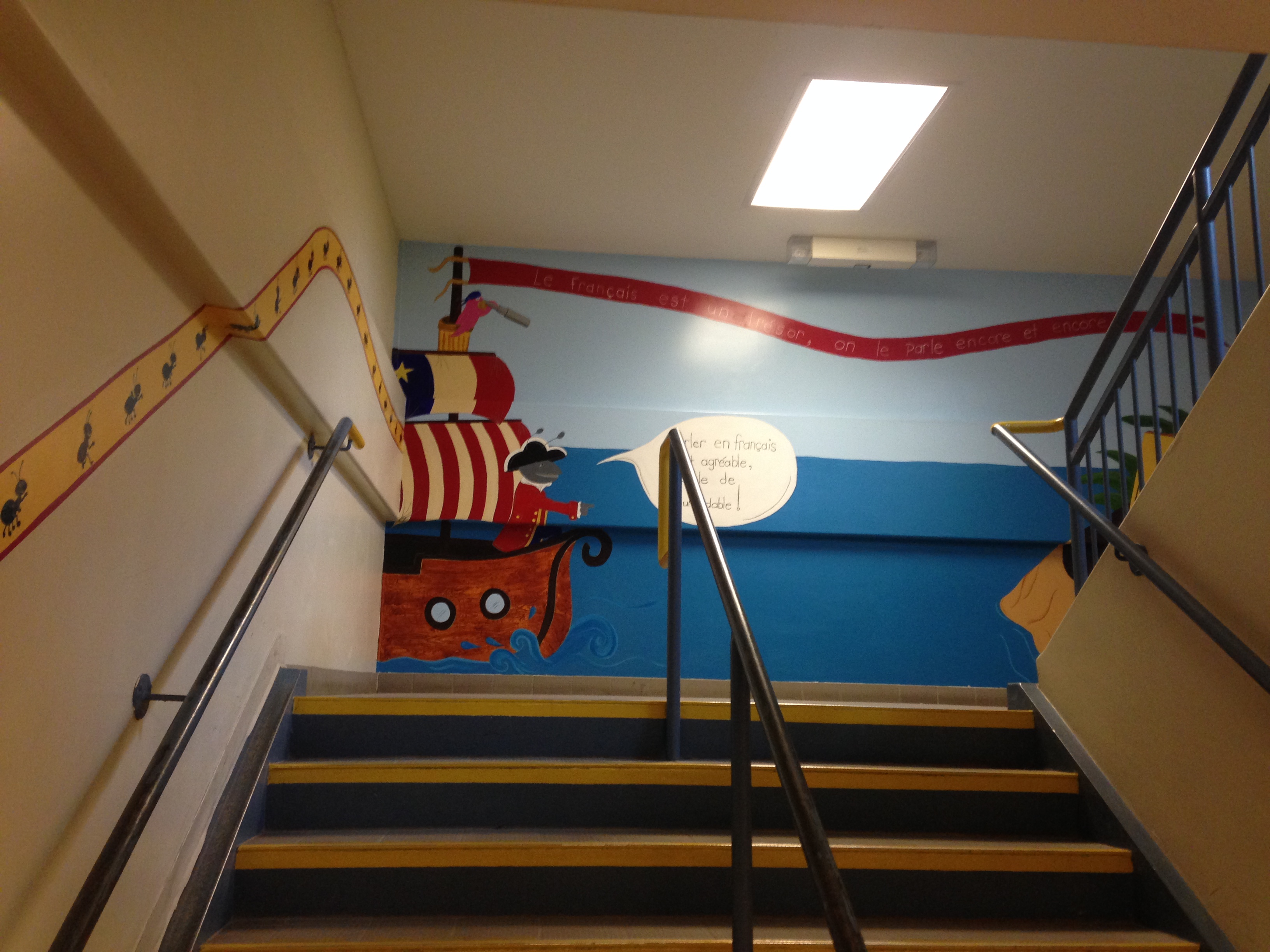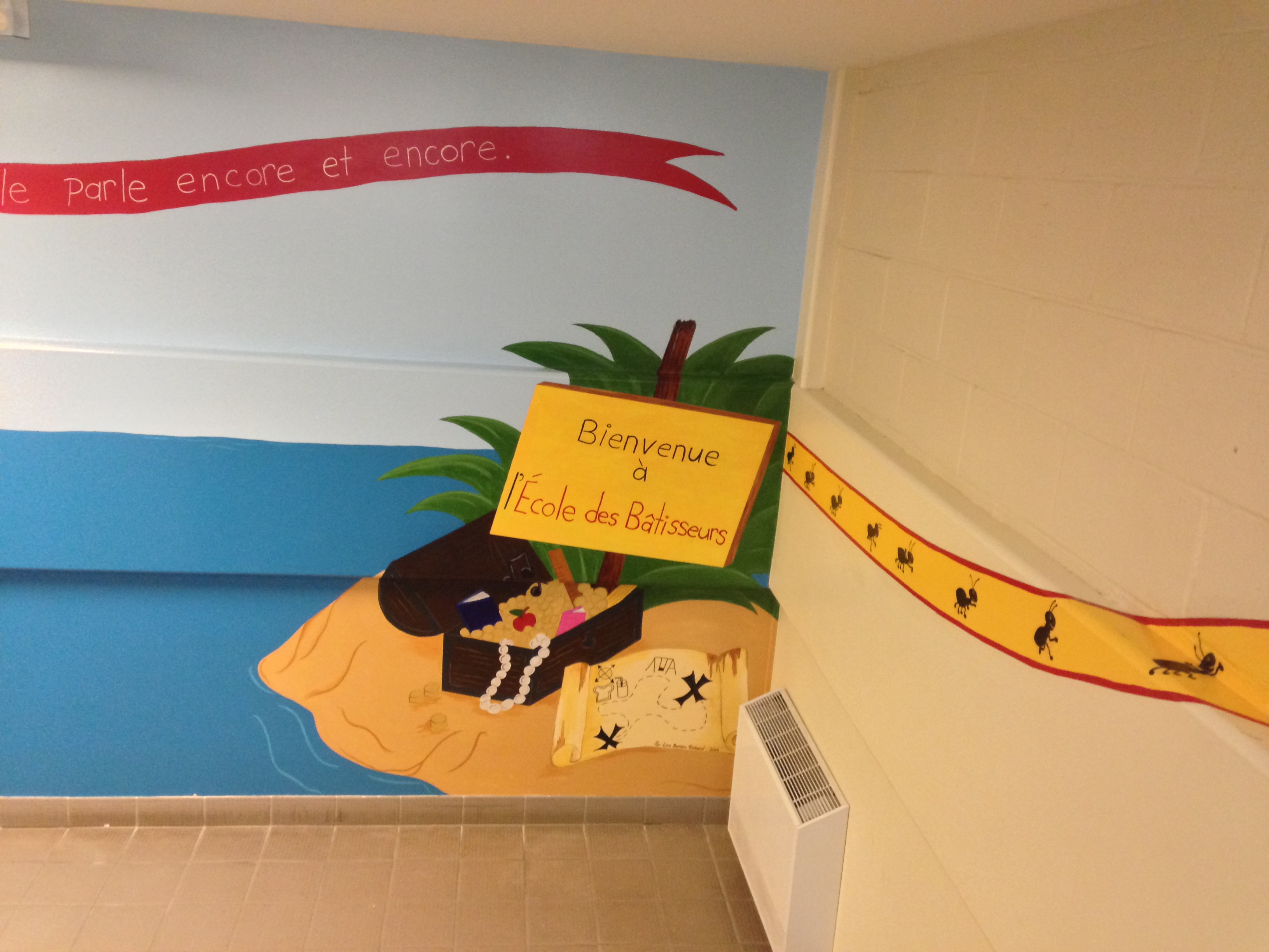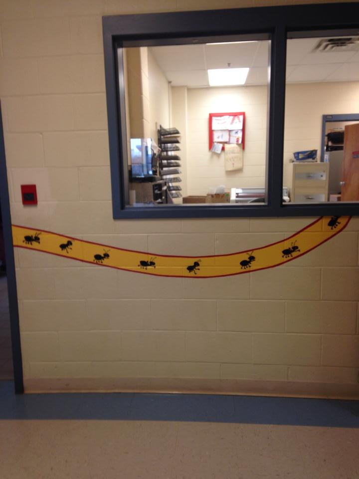 J’ai aussi peinturer un ruban de fourmis qui montent les escalier et vont jusqu’au sécretariat.