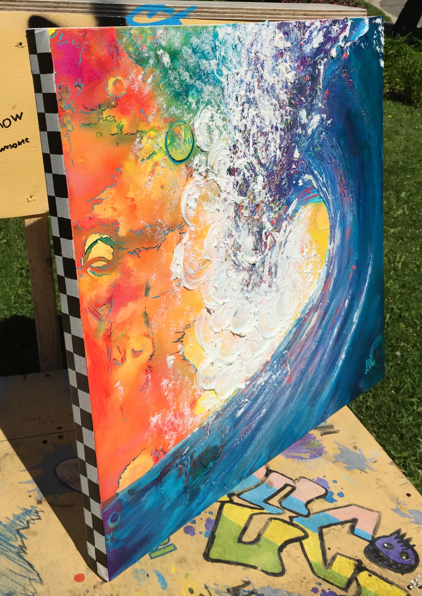 Kawanka is a beach and music painting. This one I tried combining both styles. I went all out and even did the sides all funky! SOLD