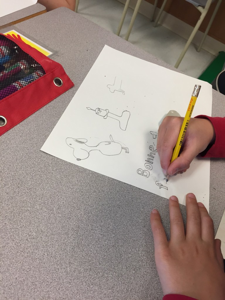 Mme Angèle Doucet Leger’s grade 2 class at École des Bâtisseurs, worked on an Art Smart project with me. They felt there was a need for French greeting cards in this city, so they took it upon themselves to create some cards to fill this need.