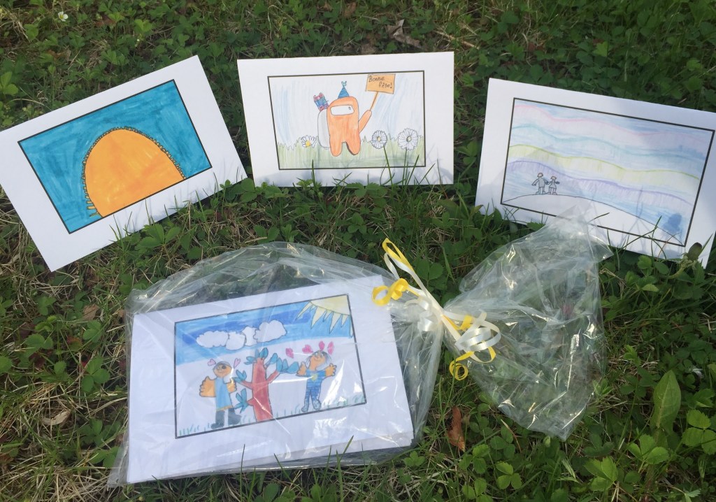 Each student completed 5 different cards, therefore the total cards completed with this class is a nice variety of 80 different greeting cards! Some of these cards have a message inside, which is handwritten by the student, others are blank. Once the card has been completed it is printed on card stock and sold with an envelope of the same 5.5×8.5 size.