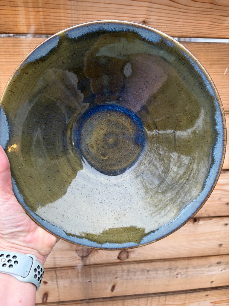 Olive/Grey Fruit Bowl, speckled clay $50
