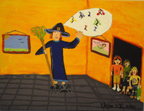Painted a 48”x36” canvas, in the window front of the M&T Deli for one full week. The finished artwork is called ”Curly Sue”.