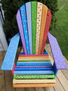 This year I painted a children’s chair. Click here to see some photos. I called my chair the Chalk-A-Doodle Chair. On the arms of the chair I used some chalk board paint, to keep the kids entertained!