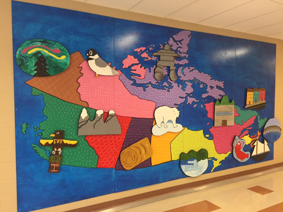The completed piece was showcased at a fair in Moncton, NB, along with work from other schools of the same school district. The painting now hangs near the entrance of the school with all the student’s signatures along the sides the painting.