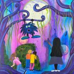 Third grade students were reading a book called Mlle Charlotte. Students voted on their favourite scene from the book and were then asked to draw it. By looking at these drawings, I identified every student’s artistic strength. This is allowed me to decide what each student would paint on our final class painting of this scene. During the next month, I took 3 to 4 students out of the classroom at a time to pain for about 30 minutes to one hour. They took turns painting until it was complete. To add a finishing, they sewed beads around certain parts of the painting.